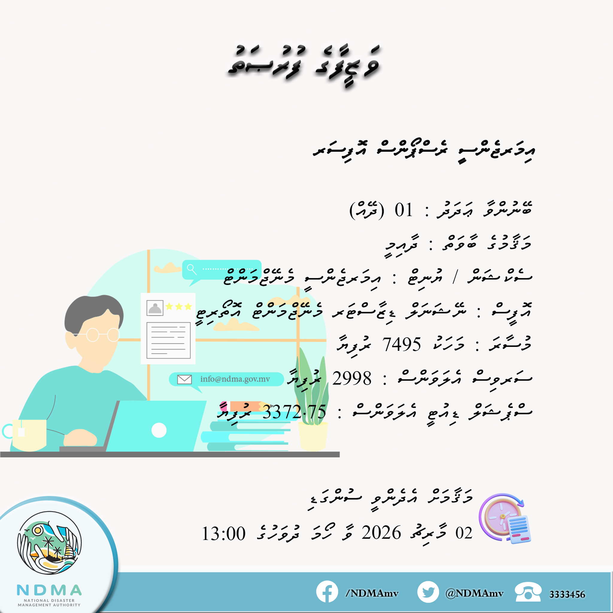 މި ވަޒީފާއަށް ކުރިމަތިލައްވާ